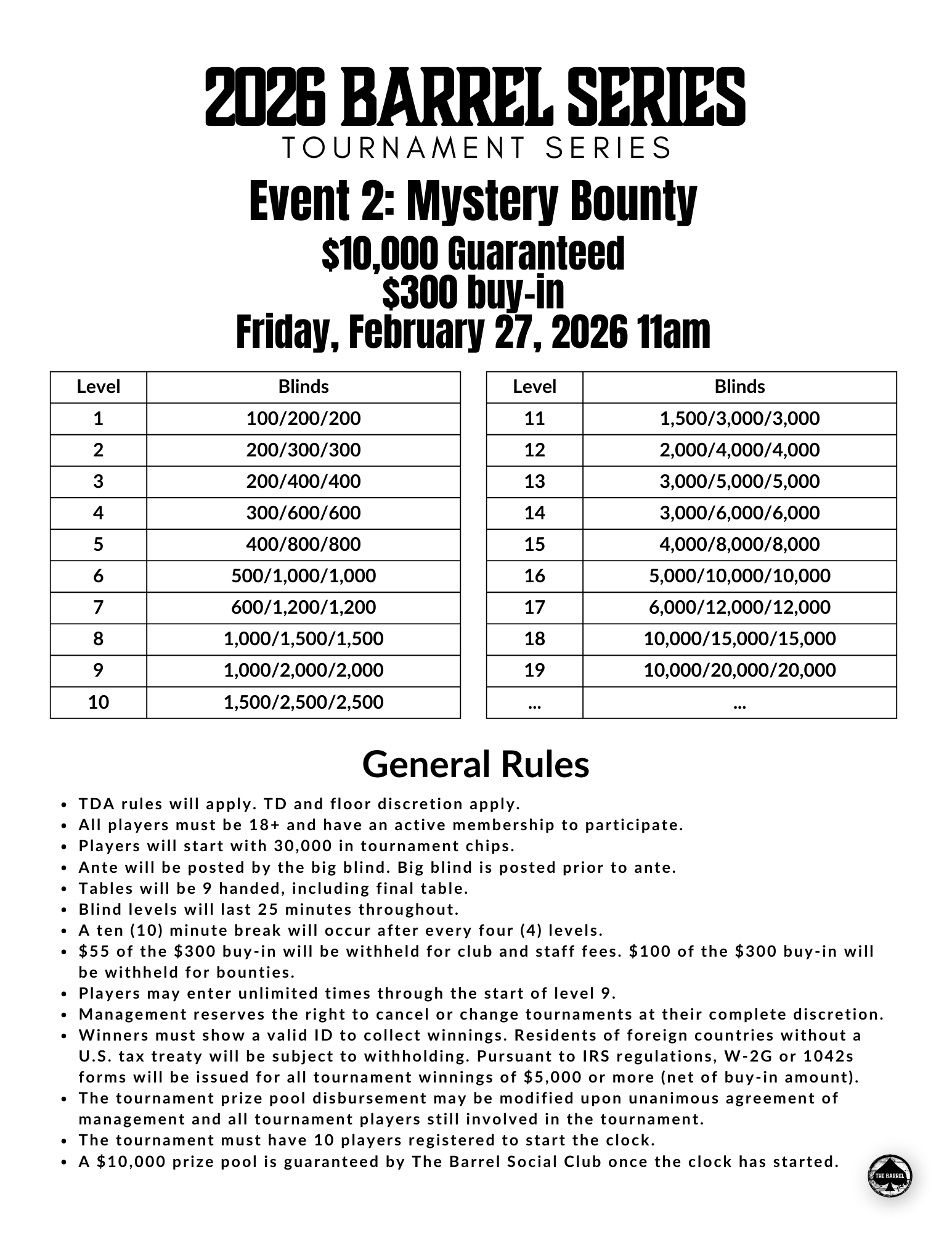 $300 buy-in