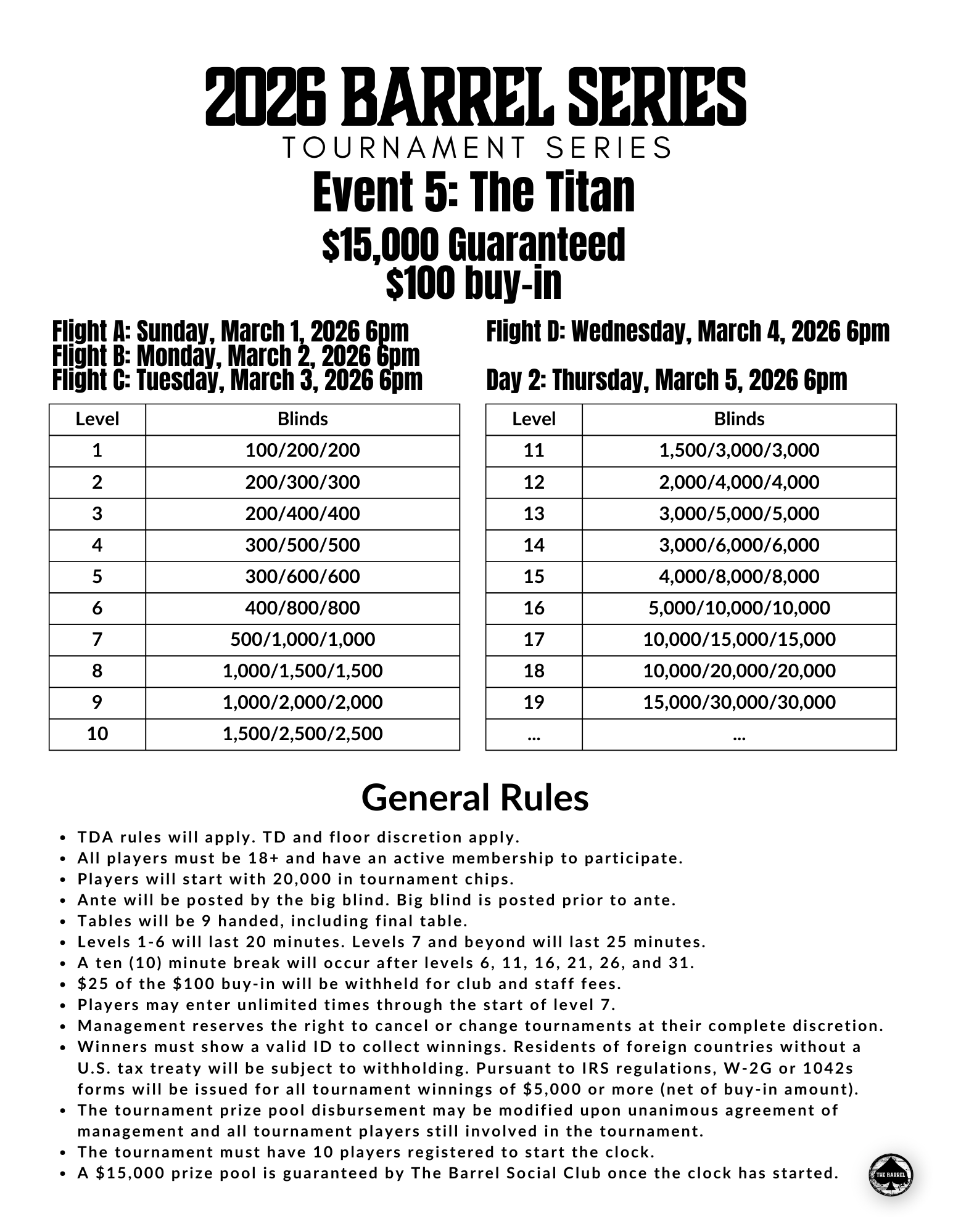 Flight B: Monday, March 2, 2026 6pm