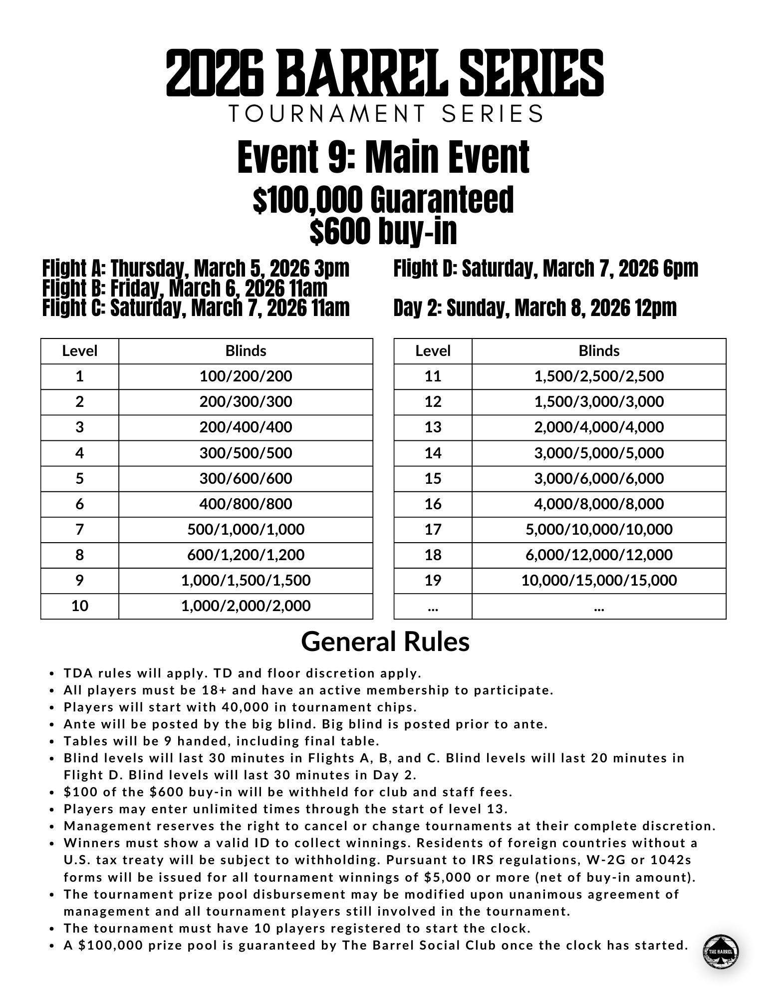 Flight D (turbo): Saturday, March 7, 2026 6pm